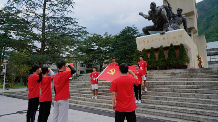 参观结束后,团队中新入党党员代表在体育教育专业本科生党支部书记许丁晨老师的带领下,于红军飞夺泸定桥纪念碑前举行了庄重的入党宣誓仪式,在红军英烈的塑像前宣誓就是要让每一位党员不忘过去,把握当下,创造未来;更是要让每一位党员和入党积极分子认真学习我党我军的光辉历史,时刻坚定自己的理想信念,不忘入党初心。