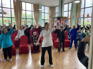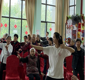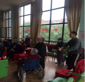 入党积极分子们以“八段锦”为载体,陪同老人们一起习练八段锦。以老人们喜闻乐见的传统体育活动为主要形式,更能满足老人的实际需求,使此次服务活动更有针对性和实效性。锻炼之前,我们与老人积极展开了互动交流,为老人们准备了各种才艺表演,给老人们带来了欢乐,让他们感受到了年轻人的朝气和活力。
