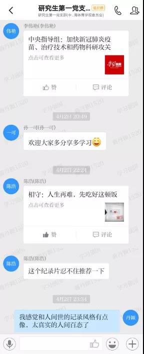 自活动上线以来,休闲学院各党员同志积极参与,经常在支部群里分享自己在学习强国中看到的文章和热点,与党员同志一起讨论学习心得。截止4月30日,首期理论学习打卡活动圆满结束。