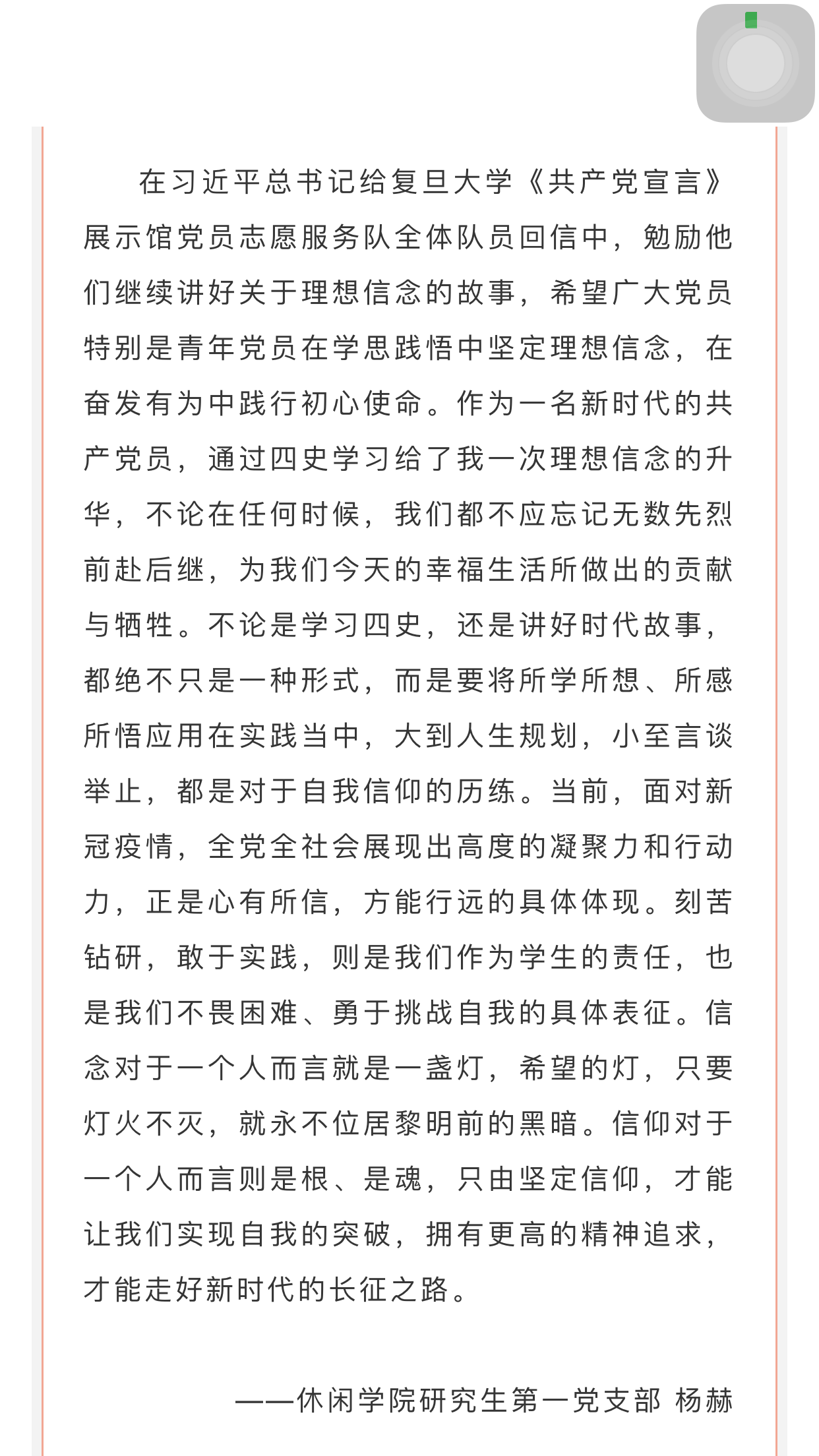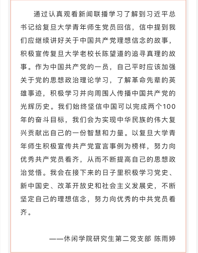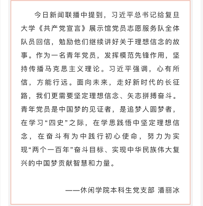 休闲学院全体师生党员学习习近平总书记给复旦大学青年师生党员的回信
