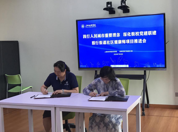 自上个月杨浦区委与上海体育学院党委联手打造的“社区健康师”项目启动后,休闲学院与对口社区积极对接,密切沟通,发动学院教师发挥专业所长,促进社区居民健康。7月29日,殷行街道党工委副书记、纪工委书记黄春怡、殷行街道社区党群服务中心副主任申刚、党建办李艳、党群服务中心徐敏至我校商讨项目实施细节。组织部副部长蒋啸天、双创学院刘佳瑜、学院党政领导班子、团队负责人参加了本次会议,推进会由党委副书记、副院长顾郑军主持。
