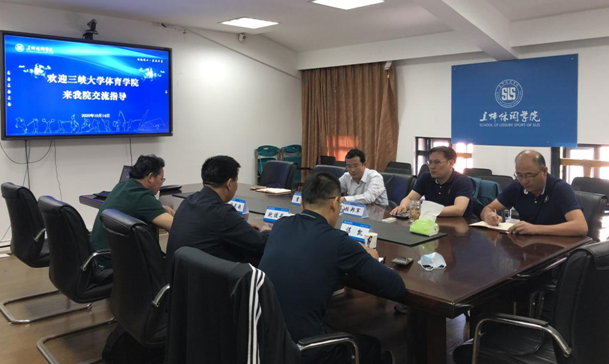 此次交流活动主要就学院的学科建设和专业发展进行深入讨论分析。首先,三峡大学教师团队观看了休闲学院的宣传片及院歌视频,对休闲学院的院史和发展有了生动形象的了解。接着,休闲学院书记霍圣录介绍了休闲学院的基本的情况,休闲学院始终将人才培养与社会需求紧密结合,不断探索和创新产学研相结合的人才培养模式。目前,社会体育指导与管理专业、休闲体育专业和体育人文社会学专业处于稳中向上的良好发展态势,体育旅游专业获得教育部批准后于2019年开始招生。最后,体育旅游团队负责人林世行老师介绍了体育旅游的筹建以及发展的现状,为今后体育旅游的发展方向做好充分的准备。