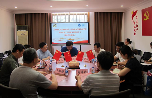 7月13日下午,休闲学院与上海师范大学化学与材料科学学院进行了全国党建工作样板支部培育支部联组学习暨签约共建活动。休闲学院党委书记霍圣录带领教工第一党支部书记韩耀刚、组织员孙一可赴上师大参加了本次党建联建活动。上师大组织部、化材学院相关领导出席了本次活动。本次活动由上师大化材学院党委副书记、院长杨仕平主持。