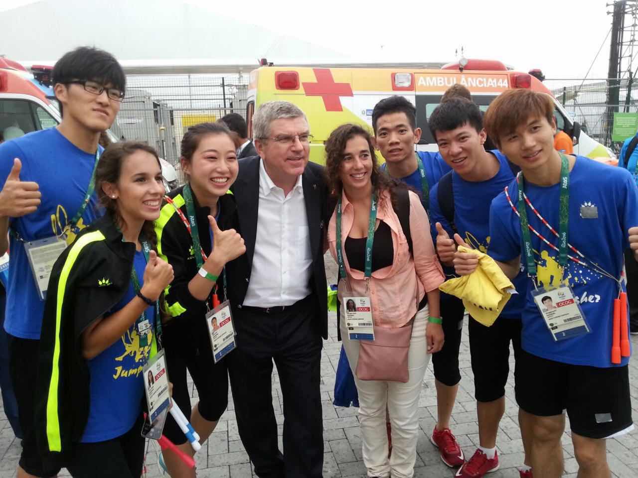 本次奥运跳绳表演队是我校向里约奥运推出的一支国际化、产学研创新融合及倡导运动健康的团队,在学校领导和国际奥委会主席巴赫先生的直接关心下,圆满完成了第31届奥林匹克运动会演出任务。巴赫主席在篮球决赛前亲自接见了奥运跳绳表演队,教练韩耀刚和李胜席向巴赫主席介绍了学校发展并邀请主席到访上海体育学院,巴赫主席肯定了跳绳队的表现,并表示“跳绳队在演绎奥运精神和传播奥运理念的比赛中,夺得一枚与竞技金牌同等重要的奖牌”。巴西跳绳协会主席Elisangela Vajda女士对队员们的跳绳技艺和对奥运做出的贡献大加赞赏,希望今后能够有更多的交流合作并为队员们颁发纪念证书。