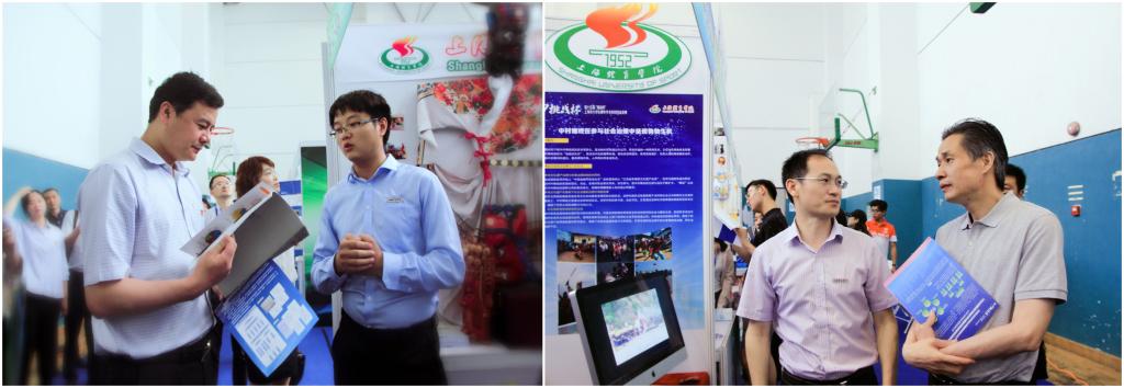 公开展示环节,团市委副书记刘刚,我校党委副书记、副院长陈晓峰等专程来到我校学生项目展位前听取项目介绍。