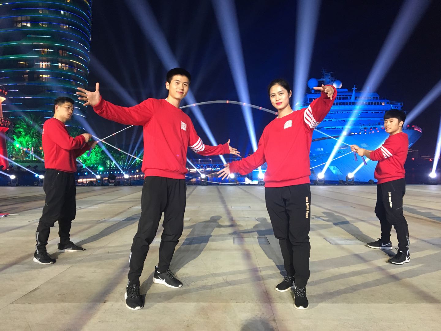在学校及休艺学院领导的关心和支持下,学生们放弃寒假休息,提前半个月来到三亚彩排。每天早上进入排练场,凌晨1-2点排练结束,在半个多月的排练中队员们全力投入,一遍又一遍的听音乐踩点积极参与到排练中,充分展示了上体学子顽强拼搏的精神和吃苦耐劳的品质,得到了导演组的一致好评。
