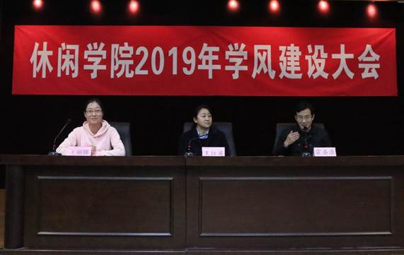 为深入贯彻全国高校思想政治工作会议精神,进一步加强教风学风建设,把思想政治工作贯穿教育教学全过程;不断提高人才培养质量,服务学生全面发展成长成才,休闲学院于3月6日下午在学生活动中心二楼报告厅分别召开了2019年本科生、研究生学风建设大会。休闲学院院长王红英、党总支书记霍圣录、党总支副书记王丽娜、各年级辅导员以及学院全体研究生和本科生参加会议,会议分别由研究生辅导员孙一可、本科生辅导员李文阁主持。
