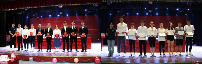 紧接着,本科18级辅导员丁浩,研究生、本科生16级辅导员孙一可分别为老一届团总支、学生会主席团和研究生会主席团及各位部长颁发荣誉证书。