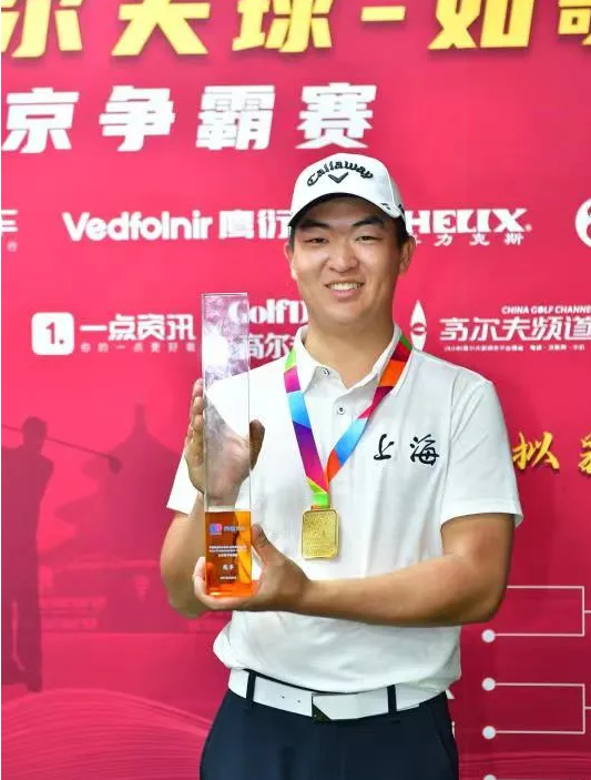3月28日在北京举行的中国职业高尔夫球-如歌网络巡回赛中,我院19级本科生刘泽昊获得2021年中国首场男子职业高尔夫比赛的冠军奖杯。