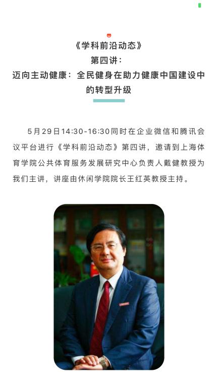《学科前沿动态》第四讲——迈向主动健康:全民健身在助力健康中国建设中的转型升级