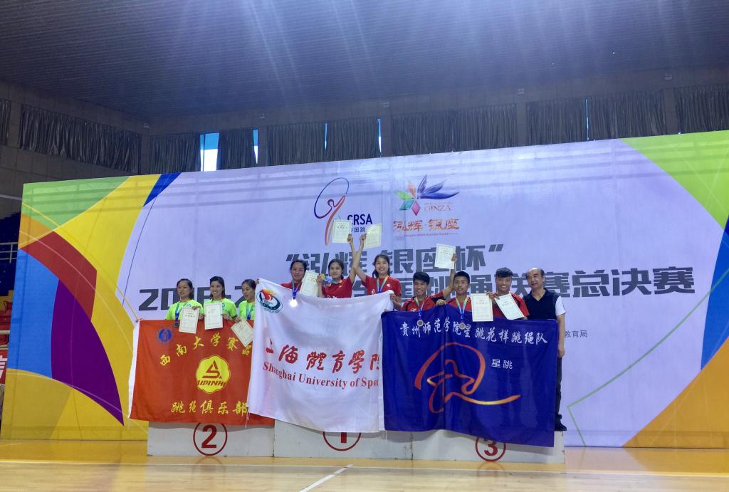 我校花样跳绳院队队员在赛场上的顽强拼搏以及独具创新的表演风格成为赛场亮点,尤其在花样赛和表演赛中起到了标杆和引领作用。花样跳绳成绩的取得展示了我院高水平的技术和技能,同时也展示了以专项课程为基础,以院队训练为引领,以大学生自主创新创业为拓展的产学研服务社会特色人才培养模式。
