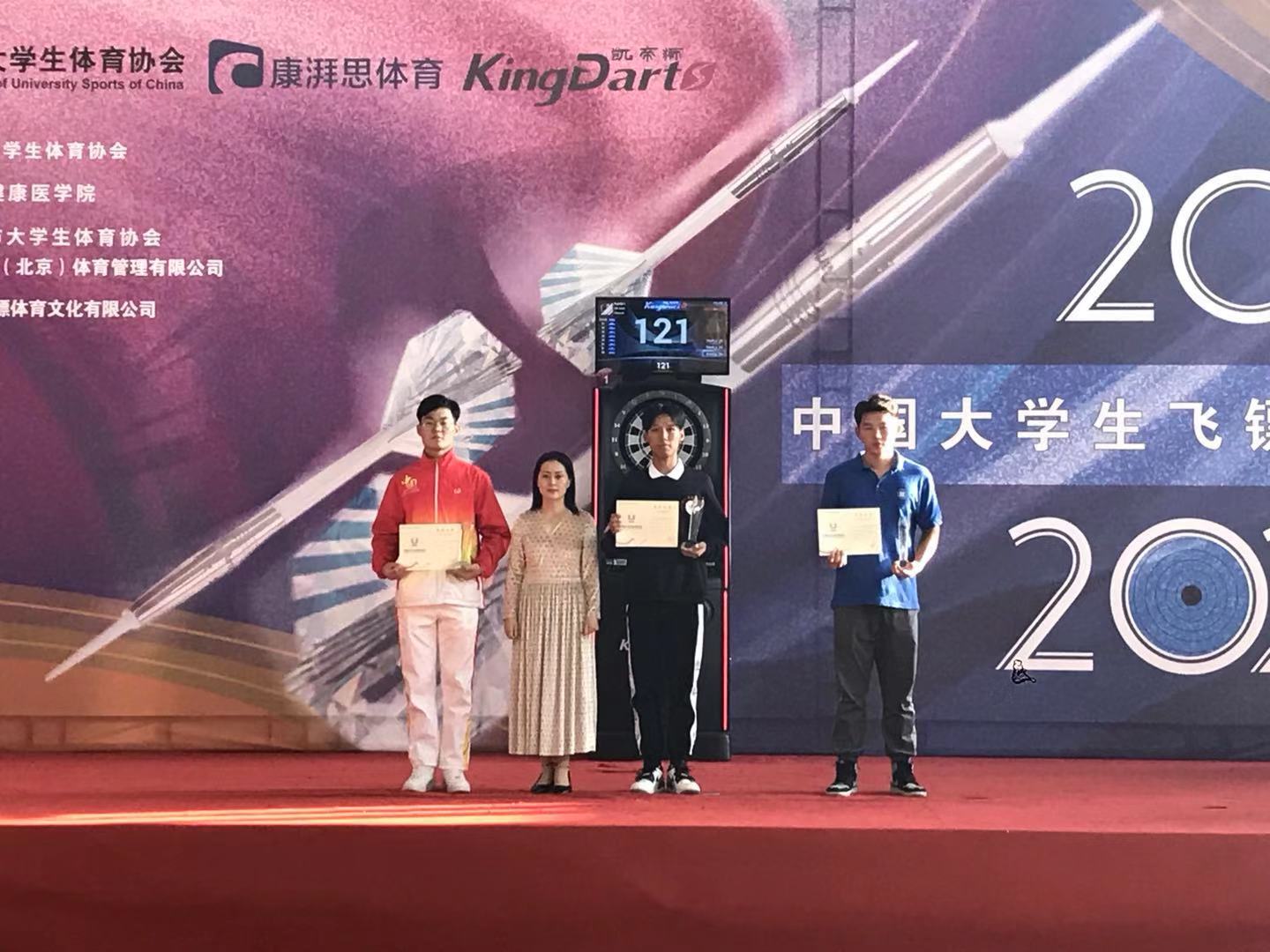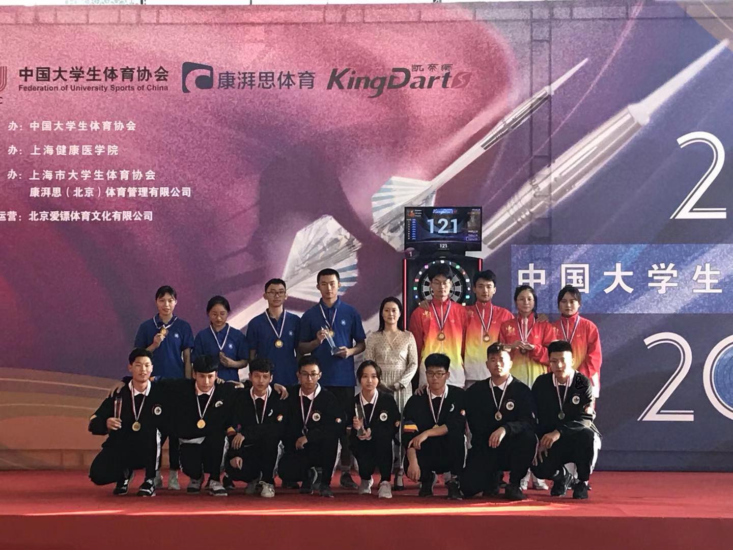 金桂飘香,我校飞镖社初秀斩获佳绩。2019年10月19日,中国大学生体育协会飞镖分站赛(上海站)在上海健康学院打响揭幕战。我校休闲学院刚刚成立的飞镖社在院领导的支持下,由林世行教练带队,6名同学经过艰苦的两天奋战,荣获乙组校际对抗赛团体第三名,其中伍玉婷获701减分赛第二名,薛天天获米老鼠赛第二名,吴宗仁获双人减分赛第三名。虽然我校飞镖社成立不久,也是第一次参加比赛,但同学们训练积极,比赛中沉着应战,不急不躁,发扬了上体人拼搏精神,为学校争得荣誉。
