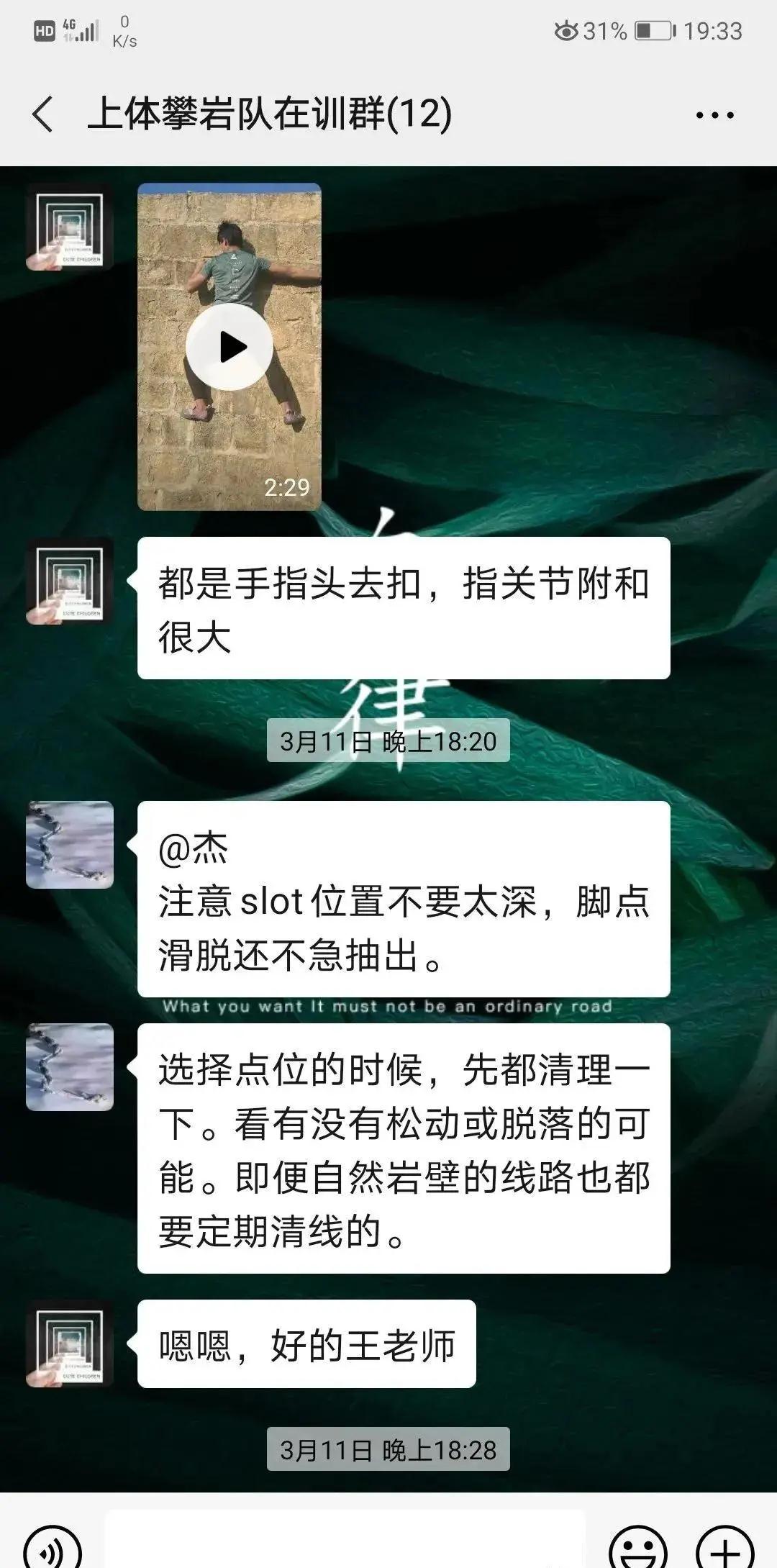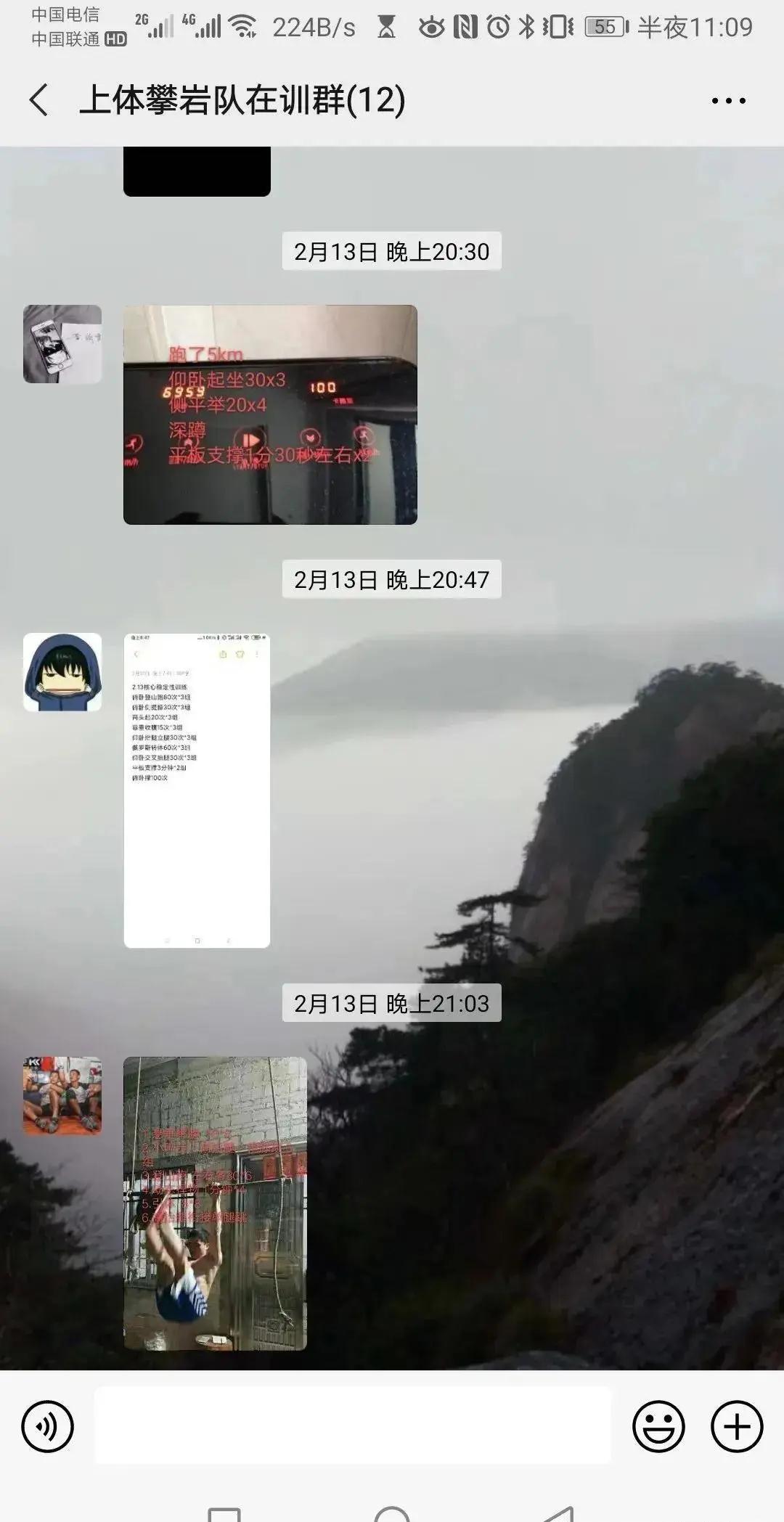 早在1月30号,上体攀岩队就响应学校运动队管理中心号召,遵循教练的训练要求,自主在家训练,并且每日线上打卡。