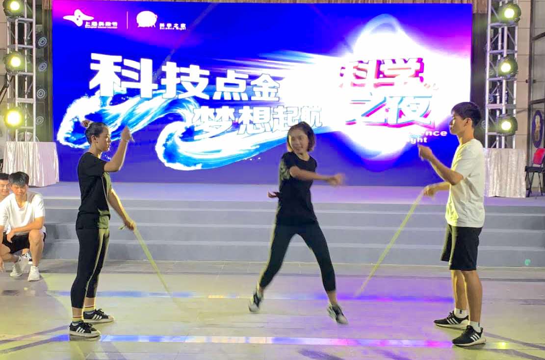 2020年上海科技节于8月23日至8月29日举办,主题为“科技战疫 创新未来”。我校“心智飞跃——花样跳绳表演中的注意探奇”科普互动实验受组委会的邀请,参加了在上海中心和海阔东岸文创园举办的“科学之夜”科技嘉年华活动。本次演出由上海市科委科普项目支持,休闲学院韩耀刚老师与心理学院的张斌和刘莹老师创编,将花样跳绳表演与心理学科普相融合,通过3个现场科普实验向观众介绍了心理学视域下的注意种类。演出吸引了上百名观众观看和参与,获得主办方和现场观众的一致好评。