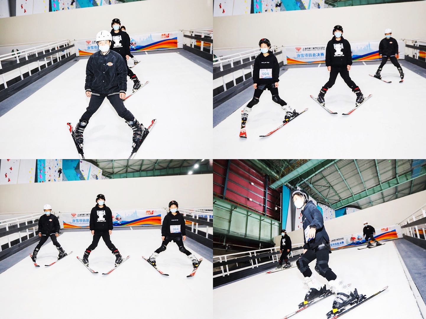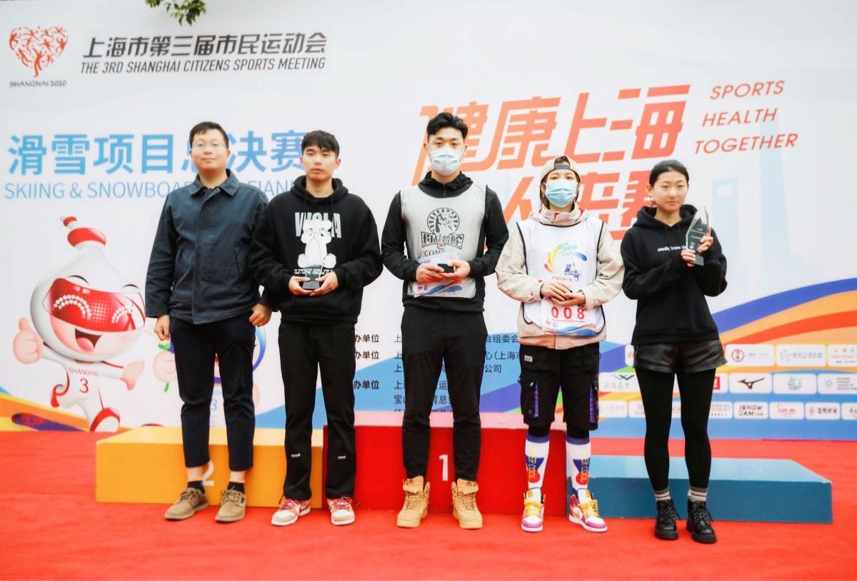 为积极响应国家“三亿人上冰雪”、“北冰南展”等政策,推进冰雪运动进校园,助力冬奥会。在休闲学院休闲体育团队负责人刘东宁老师,以及教练姜嵘嵘老师的带领下,我校休闲学院8名学生参加上海市第三届市民运动会滑雪项目总决赛。此次比赛于2020年11月21日在宝山区博绣荟文创园顽酷运动工厂举行。该赛事由上海市第三届市民运动组委会主办,上海市冰雪运动协会、宝山区体育总会、杨浦区体育总会协办,竞赛项目包括单板个人、单板团队、双板个人、双板团队。
