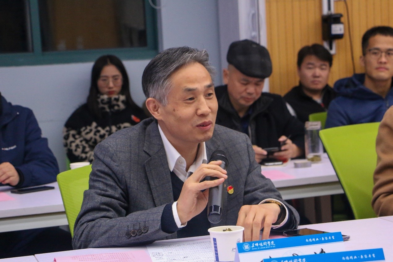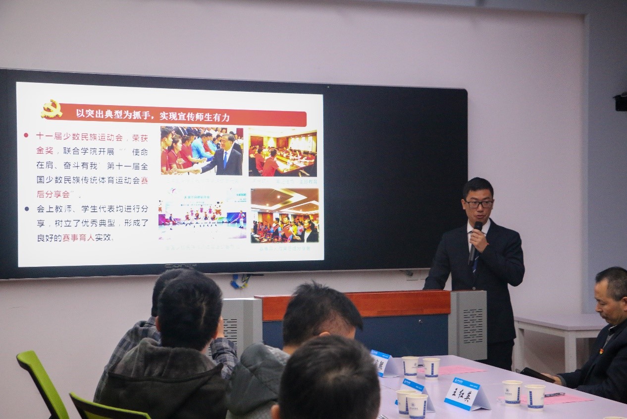 休闲学院教工第一党支部书记韩耀刚代表教育部全国高校样板支部建设单位做了交流分享,并对支部党建工作的“四梁八柱”进行了重点介绍。