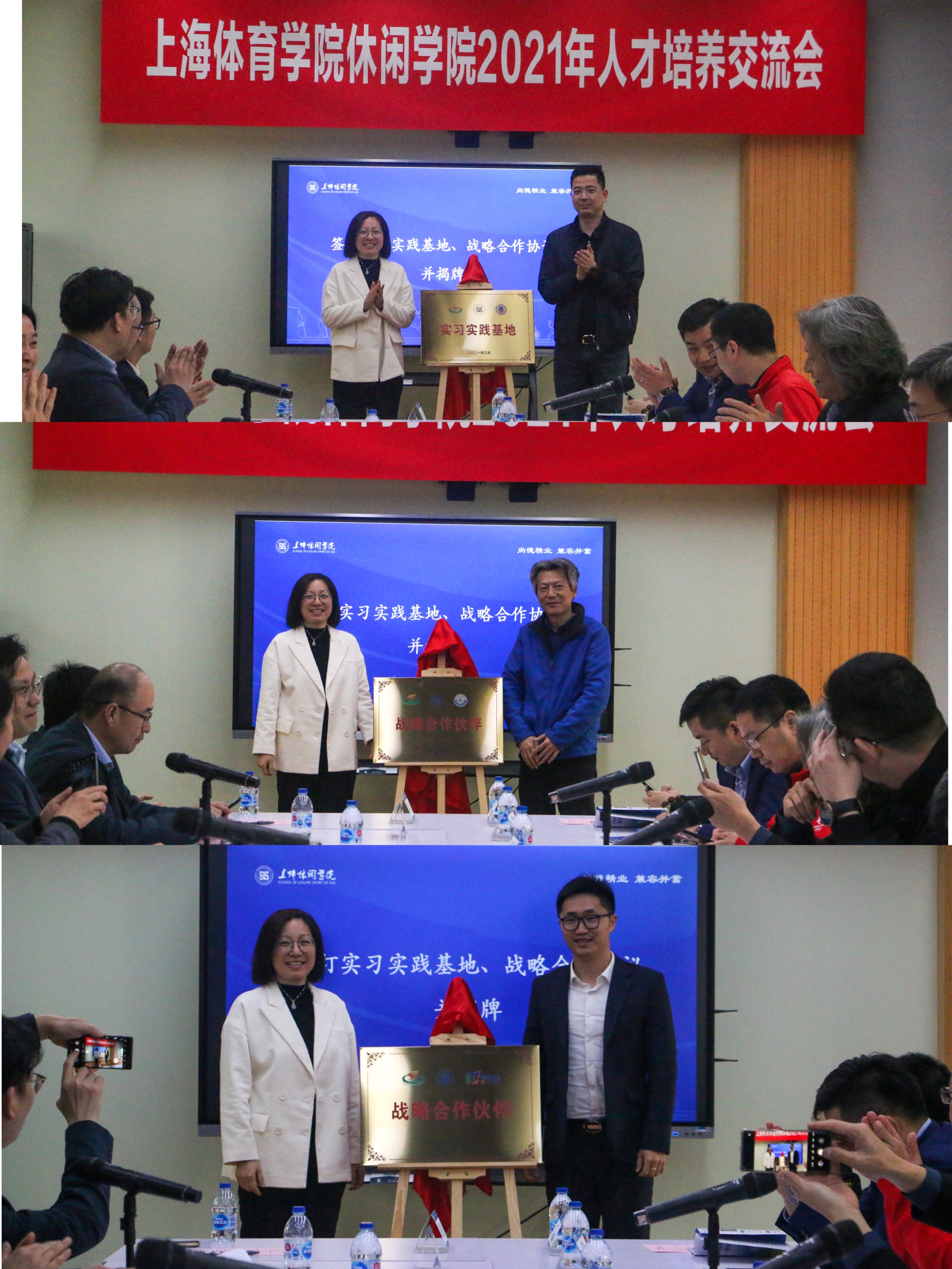 休闲学院院长王红英分别与上海市体育总会秘书处、万航旅业(上海)有限公司、上海市青少年体育协会、中讯邮电咨询设计院有限公司智慧体育研究院、上海英士博体育管理有限公司、北京中迹体育管理有限公司、上海翔立方文化体育集团有限公司签订实习实践基地、战略合作协议。