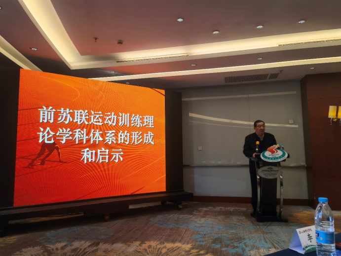 19日上午,原上海体育学院院长姚颂平教授主要从前苏联运动训练理论学科体系和构建中国特色运动训练理论体系的建议两个方面进行大会的主题报告,强调了从实践到理论,从局部到整体的逻辑思路,建议以“最好的运动成绩为目标,以发展竞技状态为核心,以严格的概念为体系框架”作为构建中国特色运动训练理论体系的建议。