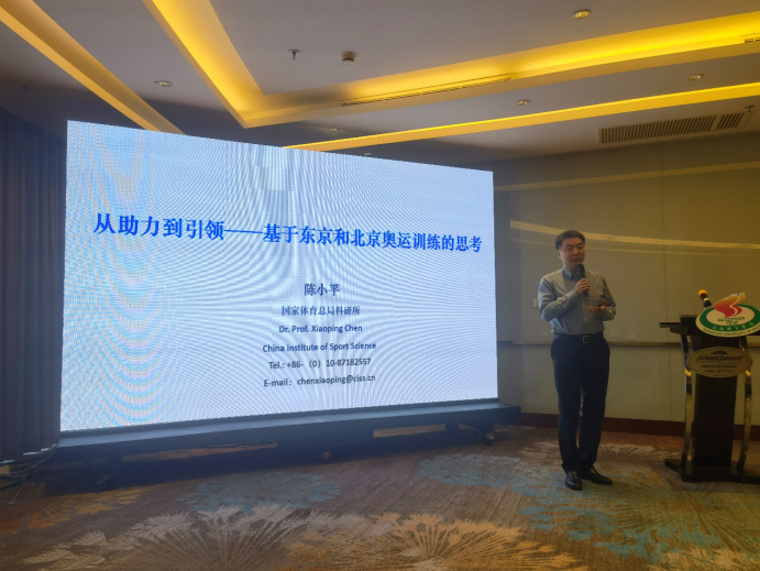 国家体育总局科研所陈小平教授主要围绕当前运动训练的新模式、新理论与新方法展开主题报告,结合从科技助力到科技引领的角色定位变化,指出科学化的训练需要选择适当的训练刺激并持续合理地进行测试、诊断与评估,而当代竞技运动科学助力的形式主要包括运动关键环节的重大创新突破和运动训练科学化水平的快速提高,并且对未来运动训练提出了认识项目规律、把握训练负荷、创新训练方法三点建议。