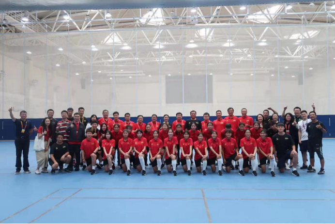 7月13日,上海市副市长陈群,上海市教委主任王平,上海市大学生体协会长薛明扬,上海市教委副主任倪闽景,原上海体育学院院长、上海学生运动会代表团副团长姚颂平,上海市教委办公室主任赵宁,上海市教委体卫艺科处处长陈华和上海市科技艺术教育中心主任陆晔一行,在青岛中学室内体育馆亲切慰问了上海市足球代表队。其中,上海市大学生女子足球代表队是由我校为班底的15名球员组成,由我校体育教育训练学院党委书记徐烈担任领队,体育教育训练学院教师叶志竞担任主教练。昨天小组最后一场比赛,上海参加的三支足球队伍均以小组第一的身份进入前8名。陈市长在慰问时讲道,记得2017年刚到上海担任副市长时,天津全运会上我们上海足球男女足都拿到了冠军,实现上海足球大满贯,也希望这次能再创辉煌!
