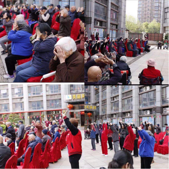 党支部的党员们以八段锦为载体,将八段锦所蕴含的“神与形合,气寓其中”传授给老人,在陪伴中与老人共同强身健体。锻炼之余,党支部党员们与老人积极展开了互动交流,与老人一起谈论“大跃进、人民公社”,谈论老一辈无产阶级革命家辅助国家主席一举粉碎了“四人帮”,在十一届三中全会上放弃了“阶级斗争为纲”,确立了党的任务是“以经济建设为中心”,与老人面对面讲述红色党史,使我们倍感亲切、备受鼓舞。