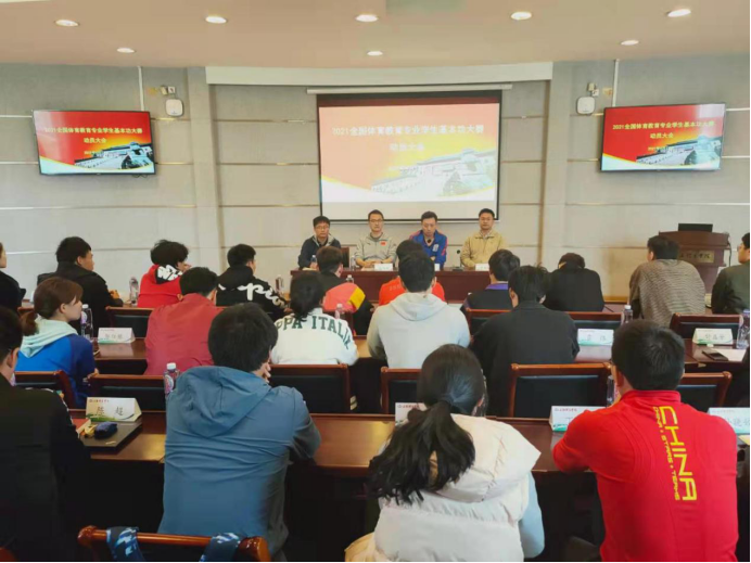 4月10日在天津体育学院召开了第一次秘书长会议,我校体育教育训练学院院长高炳宏教授、舒盛芳教授等6人参加了会议,进行了学习参赛规程和抽签等工作,抽出了我校参训的18名同学(12名男生和6名女生)。全国24所具有体育教育专业的高校参加此次基本功比赛,主要进行理论课程(体育教育专业理论、英语、体育政策等)和运动技能(田径、体操、足球和武术)的比赛。