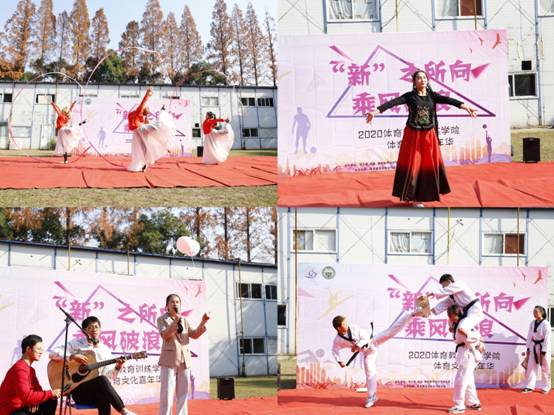 活动伊始,体训学院党委副书记、院长高炳宏为2020级新生作新生寄语,鼓励同学们要乘风破浪,勇往直前,在上体的四年时间里有所收获。随后,校团委书记陈鸿宣布体育文化嘉年华活动正式开始。此次活动以两大环节展开,首先是迎新表演,体训学子通过歌曲演唱、吉他弹唱、特色民族舞蹈及艺术体操、跆拳道、摔跤、击剑等专项表演尽展体训学子精神风貌,将体育文化、体育精神融入表演,将健康、向上、活泼、阳光的形象展现与舞台之上。