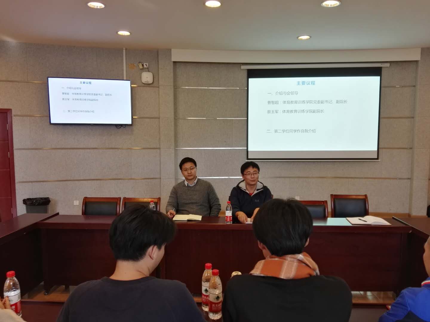 11月4日下午,体育教育专业第二学士学位学生座谈会在1111会议室召开,体训学院党委副书记、副院长曹智超、副院长蔡玉军与第二学位学生共同参加座谈。