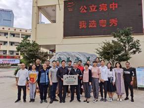 蔡玉军副院长一行先前往西山区粤秀中学,会议开始前,在该校傅佳副校长的带领下参观了校园,了解了该校目前发展的基本情况。会议中,我院代表团与西山区粤秀中学党总支书记文霆、西山区粤秀中学校长张启龙等领导班子成员、相关职能部门负责人、体育教研组全体教师以及我院5位实习生进行了深入交流,增进相互了解,并就如何深化合作交换意见。然后蔡玉军副院长向粤秀中学张启龙校长授牌,实习带队教师易清向各位实习指导教师颁发了聘书,实习队队长周家龙也代表全体实习生进行了发言。