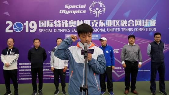 2019年11月23-24日,由国际特殊奥林匹克东亚区主办,上海市网球协会承办,中国友好和平发展基金会、上海市残疾人体育训练中心(上海特奥竞赛训练中心)、上海市徐汇区残疾人联合会、上海市徐汇区教育局、上海体育学院协办的2019国际特殊奥林匹克东亚区融合网球赛在上海国际网球中心举行。我校王兴放副院长参加了开幕式,并为比赛开球。