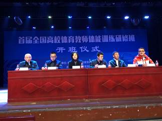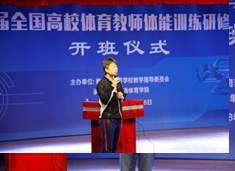开班典礼上上海体育学院副校长、教育部全国高等学校体育教学委员会公体组组长、中国大学生体育协会副主席毛丽娟对参加本届研修班的所有教师表示热烈的欢迎。她指出受邀为本次研修班的授课专家都是国内体能训练领域的精英,无论是实操能力还是科研能力都具有非常强的实力,相信一定会给各位老师带来十分受用的理论知识与实践应用方法。最后介绍了上海体育学院以及上海体育学院体能专业的发展现状,以及近年来上海体育学院在体能训练方向师资引进以及人才培养方面所取得的进步等。中国大学生体育协会职教分会秘书长贾书申指出,此次研修班有两大特色。第一、讲师阵容强大。第二、学员的报名热情高。他感谢上海体育学院对本次研修班所做的各项周密准备工作,同时对全体参会老师表达了良好的祝愿,希望大家能够学以致用,将所学的知识带回学校服务学生,让学生受益。上海市教委体卫艺科处副处长黄峰副处长谈到此次研修班非常重要,将为大学体育教师体能专业能力提供重要帮助,同时也对上海体育学院在学术创新成果方面的所作的贡献给予了高度评价。中国大学生体育协会注册部与协会管理部主任籍强指出,此次研修班的举办具有开创意义,因为他观察到在每年的学生比赛中,学生体能的缺失现象十分严重,只有弥补了体能的缺口才可以真正促进我国学校体育的发展、真正提升学生体质,为中国学校体育的长远发展助力。