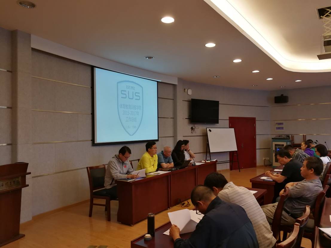 根据《上海体育学院中层党政领导班子、中层干部聘期届满考核实施方案》的有关要求,体育教育训练学院于5月21日8:30在体训1111会议室召开学院党政领导班子2015-2018聘期基层述职大会,会议由学院党总支书记赵晓晗主持,院长丁海勇、副书记副院长徐烈、副院长杨烨、副院长高炳宏等领导班子成员全体参加,该时段无教学任务的教师悉数到会听取报告并参与民主测评。