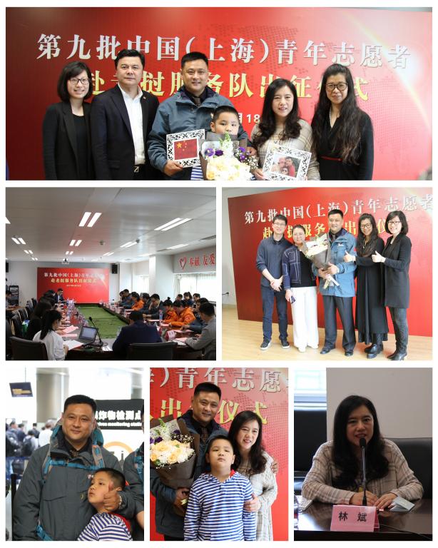 出征仪式上,孙伟老师的妻子林斌女士代表志愿者家属发言,她表示全力支持志愿服务工作,在家做好后勤保障,希望孙伟带着使命、带着精神,发挥自我所长,圆满完成任务。在发言中,她将自己和儿子亲手制作的国旗和家人合照的相框递到孙伟手中,希望他不仅要心里装着家庭这个小家,更要心里要装着中国、上海这个大家,不忘使命,不忘初心。