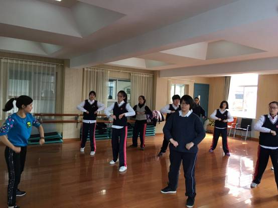 (上图为张芸碧老师所带健美操班级,学生正在进行小组考核队形的编排)
