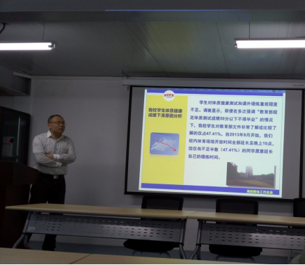 二是,讲座。到财大实习,不仅仅需要上课,还需要参加一些学术讲座,财大为实习老师举行一些学术讲座,用来增长实习老师的学术知识。12月13日在体育教学部204会议室,请到了美国怀俄明大学运动与健康系的朱骎副教授为我们进行了“从人类进化到健康:运动行为学研究的意义”的学术讲座,在这场讲座当中朱骎副教授用简洁的语言描述了不简单的有意思的运动行为学在体育当中的一些运用。讲座结束后,朱骎副教授也对实习老师们所疑惑的一些问题进行了一一的解答。
