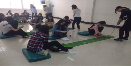 李洁老师告诉我说,他到实习快结束这会儿还是觉得莫名的有些恍惚,因为,他给学生上了整整一个学期的高尔夫球课。高尔夫球!!!