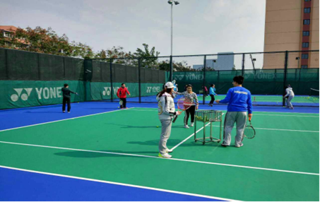 (上图为王琳琳老师在给学生们上网球课,王琳琳老师自己也说现在教网球的方法手段也丰富了很多。)