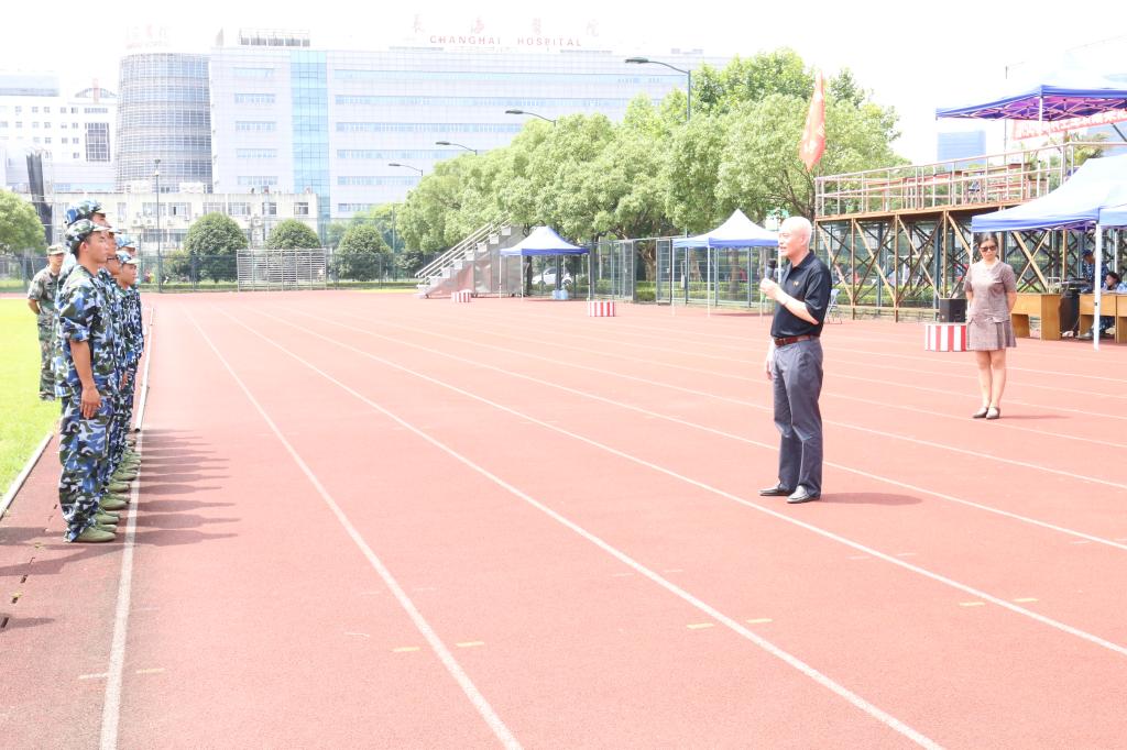 徐烈老师首先代表学院感谢教官与指导员们十几天来不曾间断的辛勤指导与陪伴,向随队指导员们了解了我院学生的军训情况,高度赞扬了同学们不畏酷暑、不怕艰辛的可贵精神,鼓励同学们要继续发扬体育人艰苦耐劳的精神,将饱满的热情和状态继续保持下去。