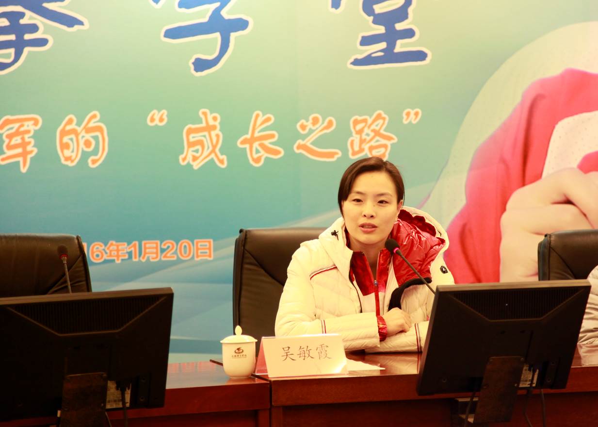 1月20日上午9:30,体育教育训练学院“竞攀学堂”(第4讲)在我院图文信息楼第一会议室开讲。本期邀请的主讲嘉宾为跳水奥运冠军吴敏霞,交流的主题是“成长之路”。出席讲座的有上海市体育局科教处处长赵荣善、上海市游泳运动中心副主任李备,我院研究生处处长周成林、研究生工作部部长殷勤、体育教育训练学院院长丁海勇、党总支书记赵晓晗,以及研究生代表。讲座由体育教育训练学院副院长高炳宏主持。
