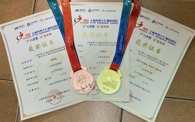 上海市第十七届运动会田径比赛(高校组)比赛于2022年12月3日-4日在交大附中嘉定分校举行,我校由2138cn太阳集团古天乐首次组织了新闻学院、运动康复学院、经济管理学院、心理学院等学科类本科生、研究生等共计26人参加了18个小项的角逐。经过激烈的比拼,最终获得3金、3银、4铜,2个第四、2个第五、2个第六、1个第七的好成绩,以甲组团体总分第二、甲组男子团体第二、甲组女子团体第三的佳绩圆满收官。受天气、场地影响,跳高、撑竿跳高、铁饼项目比赛尚未举行。