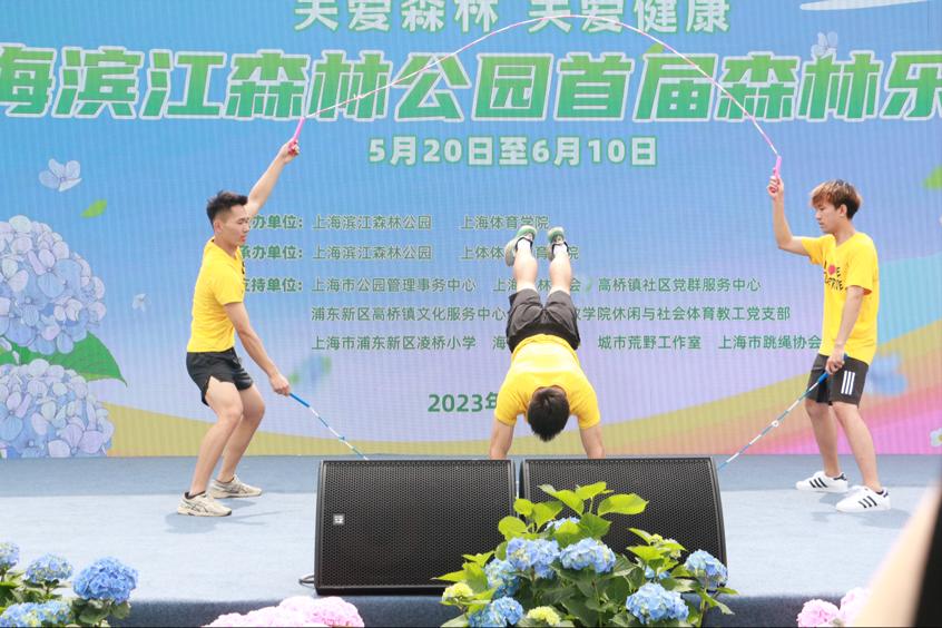 本届乐享节活动主题由探趣森林、魅力森林以及悦动森林三个板块组成。活动伊始,随着动感的音乐声响起,一段由上海体育学院花样跳绳队带来的精彩表演很快聚拢了游园的市民,这支队伍由世界冠军领衔,他们获奖无数,曾是南京青奥会、里约奥运会的表演嘉宾,在他们的舞动下,森林乐享节就此拉开序幕。随着律动的旋律,草坪上的市民游客也跟着跳跃起来,人群中随处可见亲子结伴运动的场景,欢乐的气氛在公园洋溢。