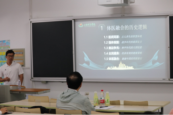 韩耀刚同学分别从医武同源:古人养生的智慧体现;强国报体:战争年代的救国良方;奥运争光:和平年代的大国较量;全民健身:经济有效的健康策略;体医融合:健康中国的坚固基石五个方面细致清晰的分析了体医融合的历史逻辑。充分说明了体医融合在不同时代背景下所发挥的重要作用。随后韩耀刚同学又从体医融合的研究成果、体医融合的政策支撑、体医融合的治理模式三个方面解析了体医融合的国际经验。
