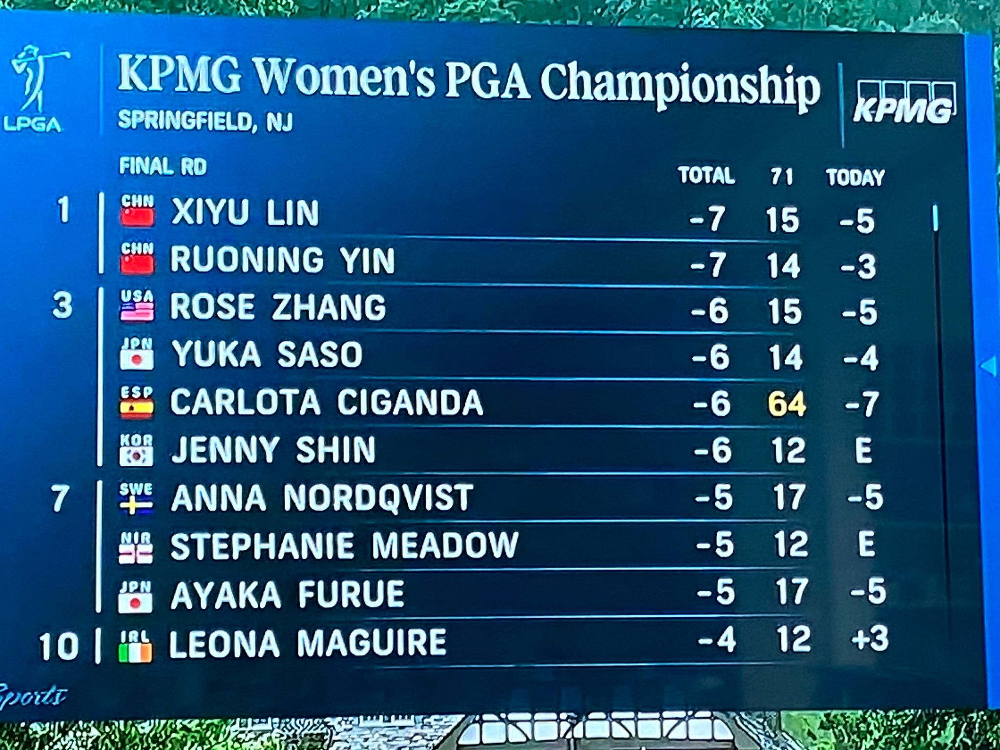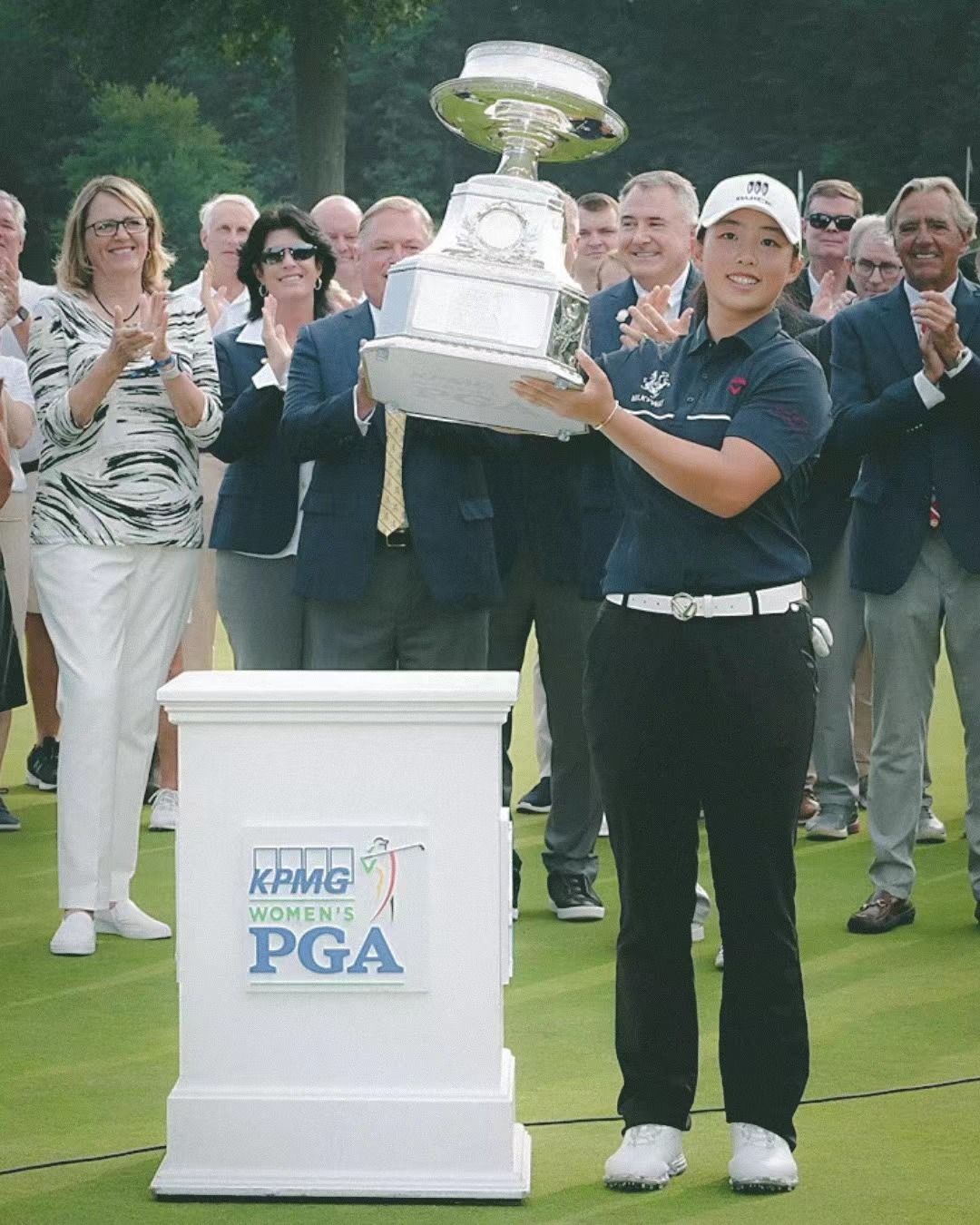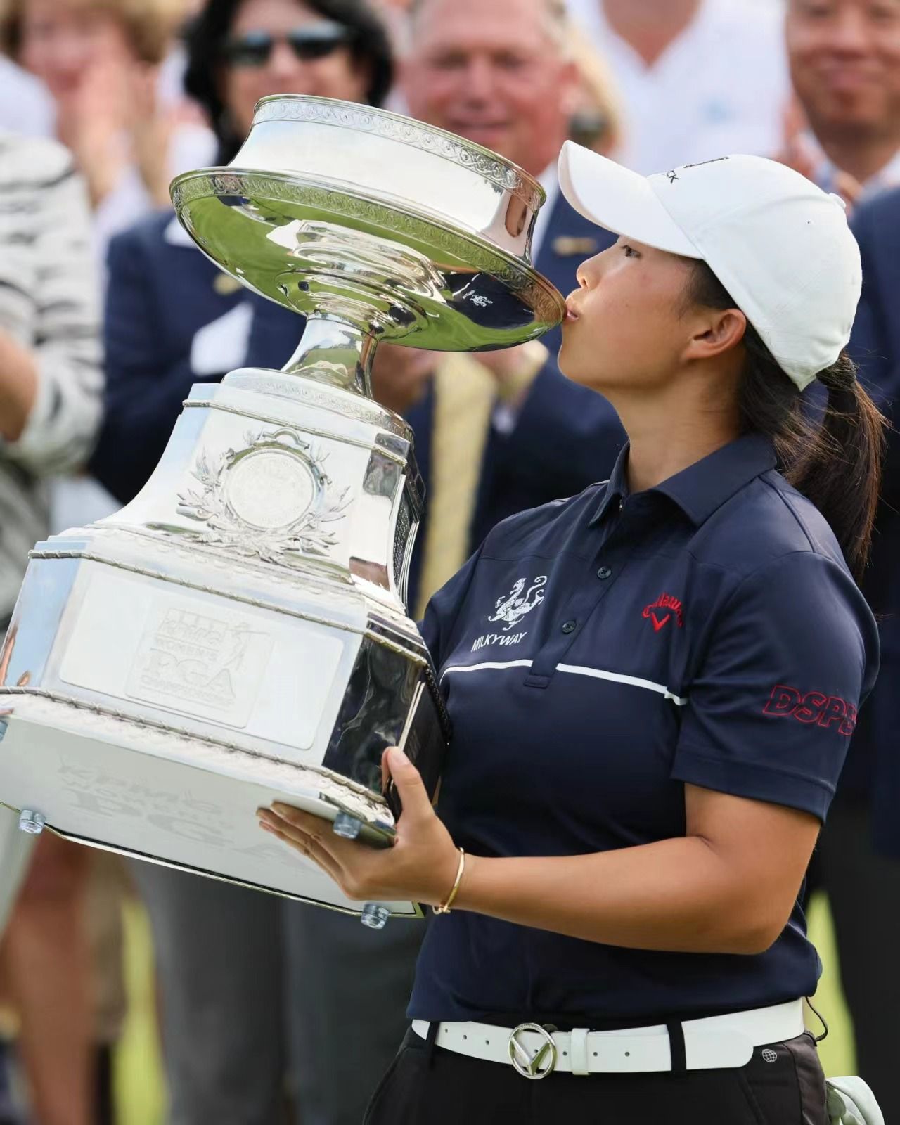 在最后一洞的五杆洞,林希妤开球失误下水从领先阵容滑落。殷若宁最后一洞开球进入右侧长草的不利情况下,第三杆准确将球攻上果岭,最后面对15英尺的小鸟推毫不手软推进洞中,凭借决赛轮无失误的67杆(-4),赢得个人生涯首座大满贯冠军,同时在今年3月赢得DIO洛杉矶公开赛后,成为LPGA双冠王!