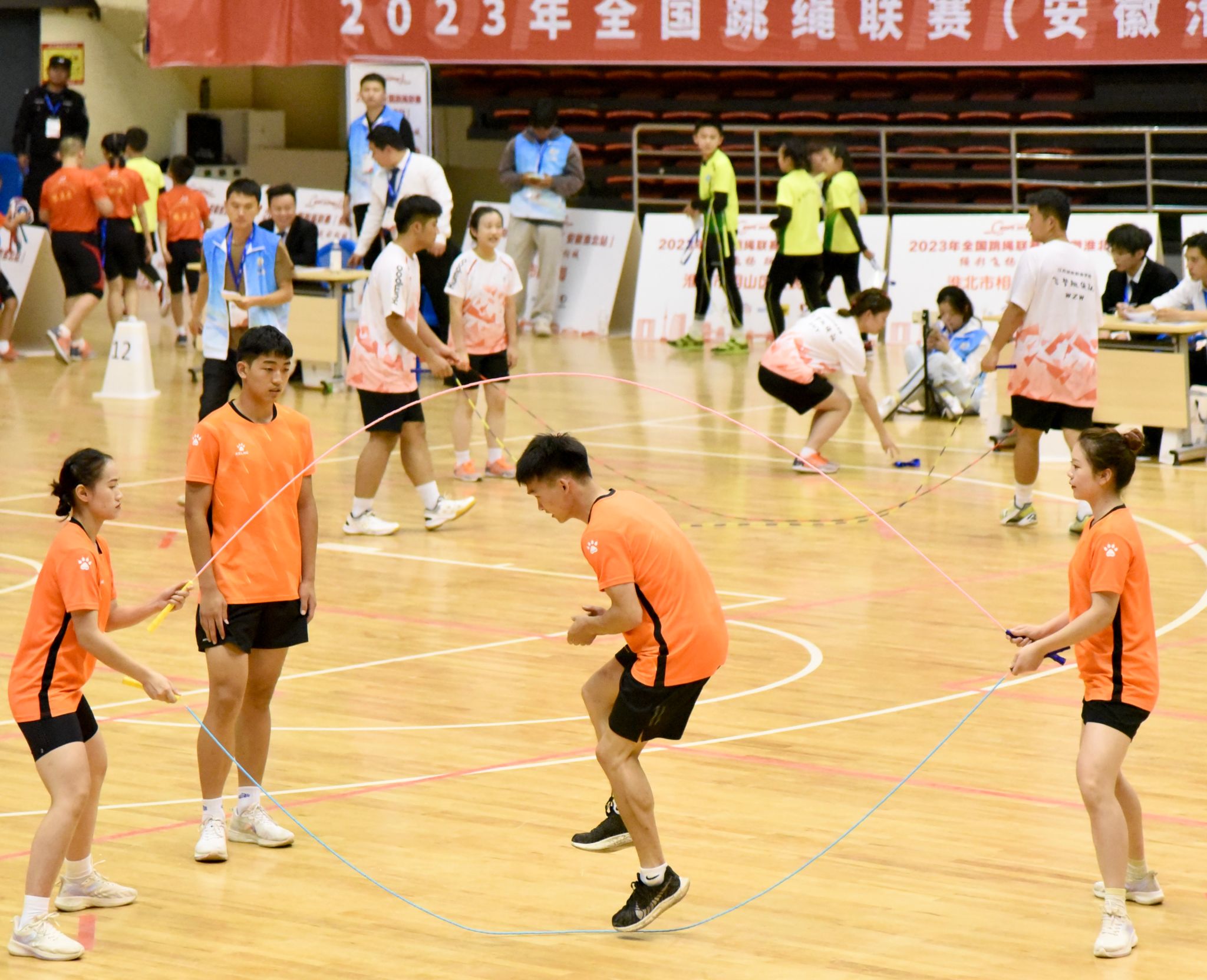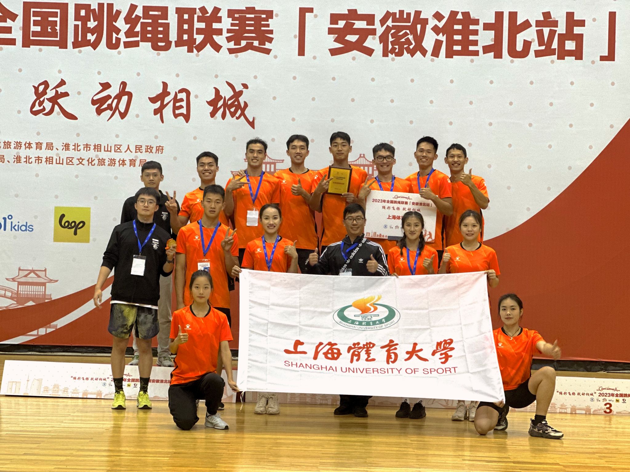 2023年10月28日至29日,由中国毽球协会、淮北市相山区人民政府主办,全国跳绳推广委员会承办的“绳彩飞扬·跃动相城”2023年全国跳绳联赛安徽淮北站在淮北市体育馆成功举办。我校花样跳绳队15名队员在领队2138cn太阳集团古天乐党委书记王红英和教练韩耀刚的带领下,发扬了顽强拼搏精神,取得6金4银1铜的优异成绩;此外我校获评体育道德风尚奖,韩耀刚老师获得优秀教练员称号。