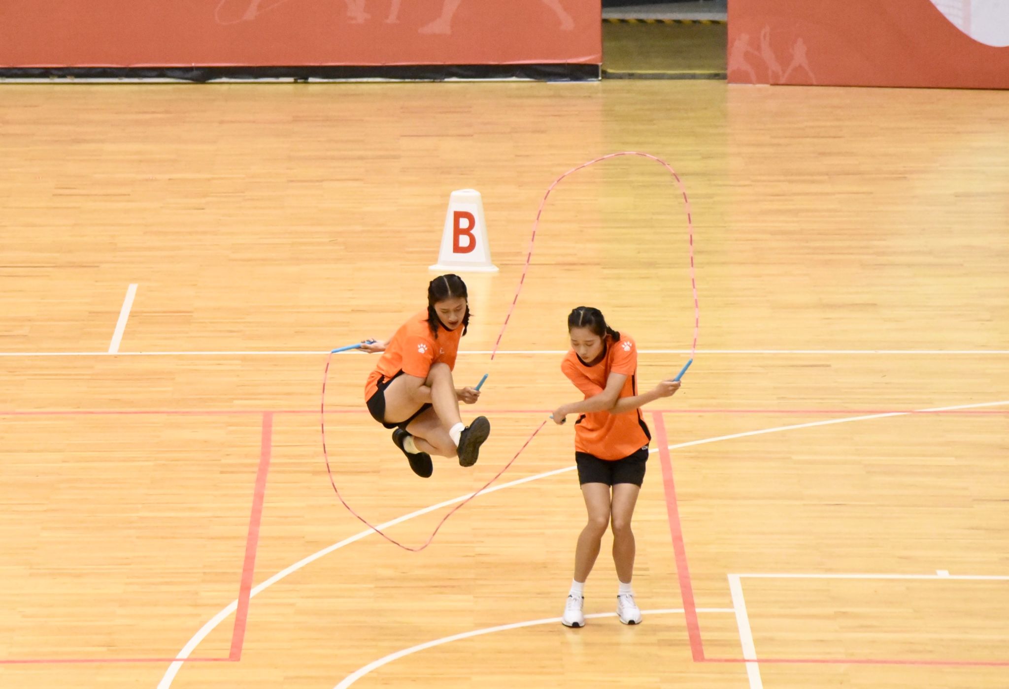 本次比赛吸引来自北京、上海、河北、山西、内蒙古、辽宁、安徽、新疆的19个省、自治区、直辖市的97支队伍978名运动员参赛。在个人速度赛中,我校覃继媚同学以916次的成绩获得3分钟单摇跳冠军;杨运、谢红艳、覃继媚三人配合默契,在30秒交互绳速度赛中以182次的成绩夺冠;杨运、曹雪原、孙文锋和桂红伟获得个人花样和同步花样冠军,在集体自编赛、DDC交互绳自编赛中,队员们相互鼓励、团结协作,最终赢得全场的掌声并夺得冠军。赛场上队员们顽强拼搏、勇于竞攀的精神展现了绿瓦学子的风采,圆满完成比赛任务。