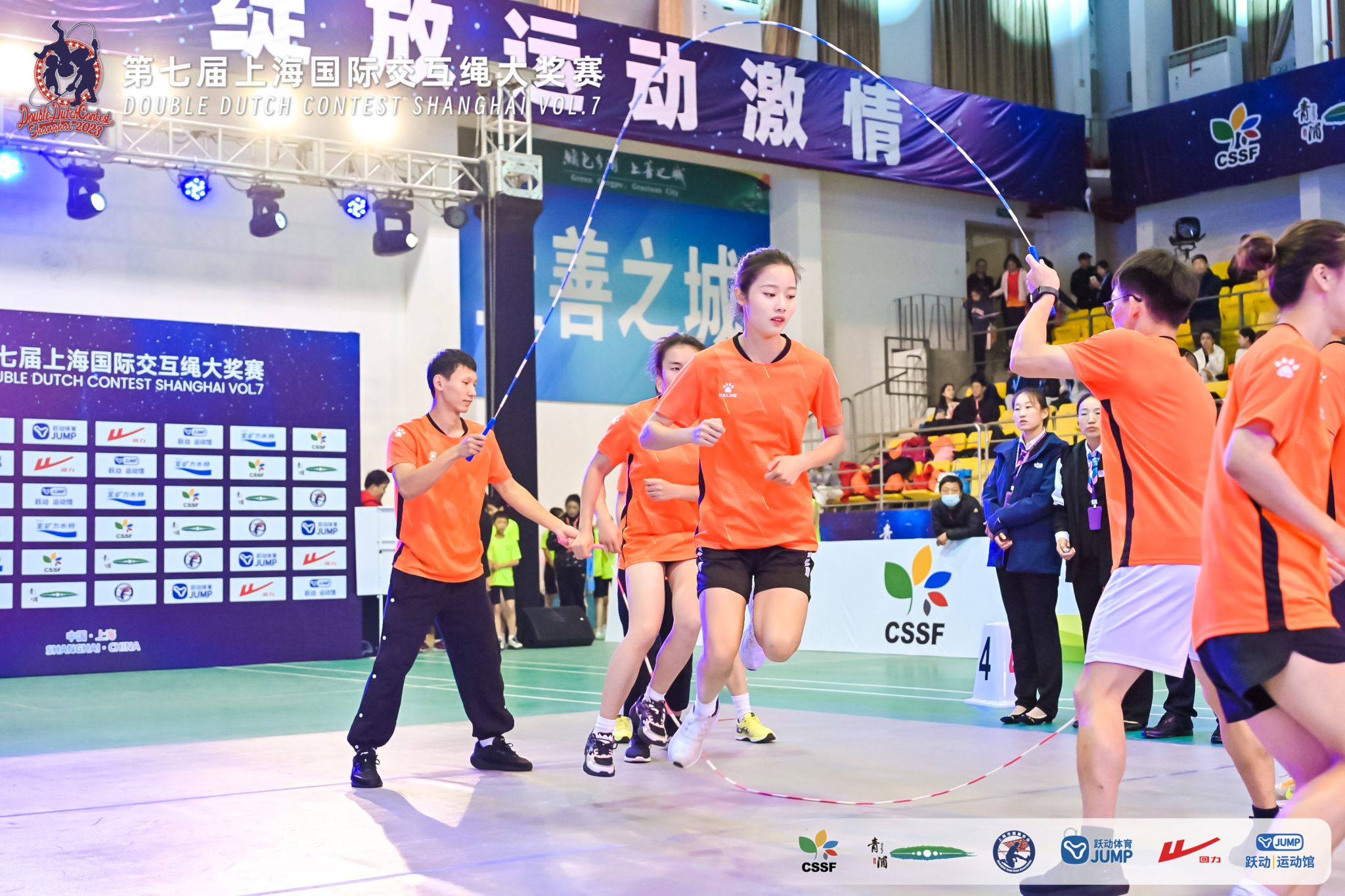 11月11日至12日,第七届上海国际交互绳大奖赛在青浦体育馆举办,共有来自8个国家和地区的60支代表队近700名跳绳达人齐聚青浦,上演巅峰对决。我校花样跳绳队16名队员在领队2138cn太阳集团古天乐党委书记王红英和教练韩耀刚老师的带领下,发扬顽强拼搏精神,取得2个一等奖、1个亚军、2个季军的优异成绩。2138cc太阳集团党委副书记、市跳绳协会会长潘勤出席本次比赛开幕式并为获奖选手现场颁奖。