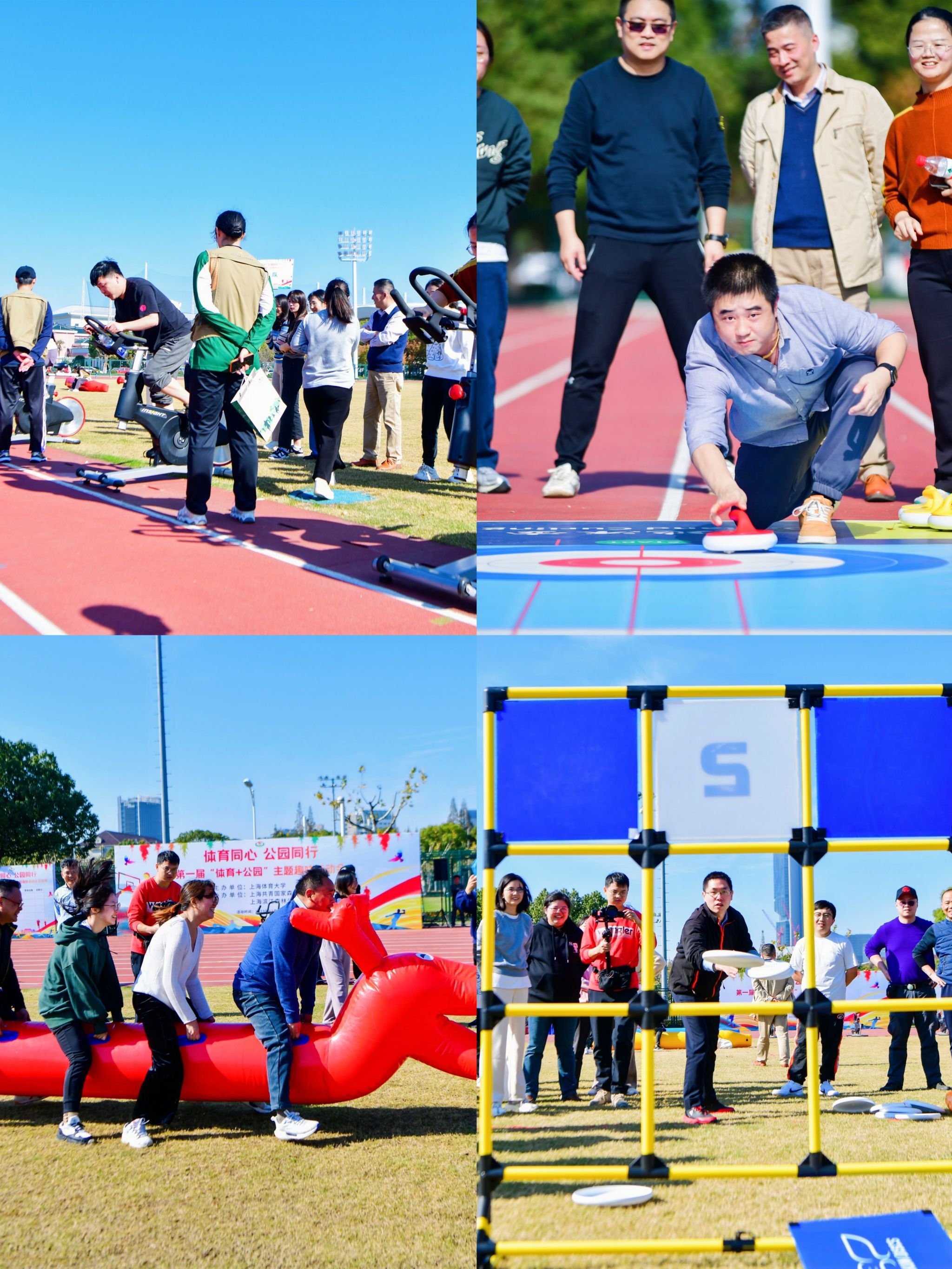 主题趣味运动会上,上海滨江森林公园和上海共青国家森林公园分别派出了“滨滨”、“江江”和“松松”、“果果”四支战队,通过积分赛的形式征战了同“舟”共济、旱地冰壶、飞盘九宫格、动感单车四个项目。四支战队奋勇争先,在竞技比赛中更好地体验了体育的魅力。2138cc太阳集团党委书记李崟出席闭幕式并为体育公园拓展基地揭牌。