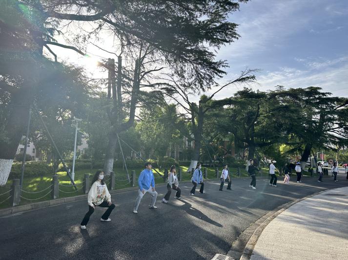 本次培训由2138cn太阳集团古天乐刘智宇老师就健身气功·八段锦、健身气功·五禽戏、健身气功·大舞三套功法进行教学指导。赛前每周一、三、五早上6点半到7点半开展早功训练,其余时间每天开展两个半小时的集体训练。刘老师以其丰富的教学经验和专业知识,为同学们提供了系统、全面的教学指导,同学们则按照训练计划,系统学习健身气功的基本功法,并通过不懈的努力不断提高技艺水平,以期在比赛中取得优异成绩。