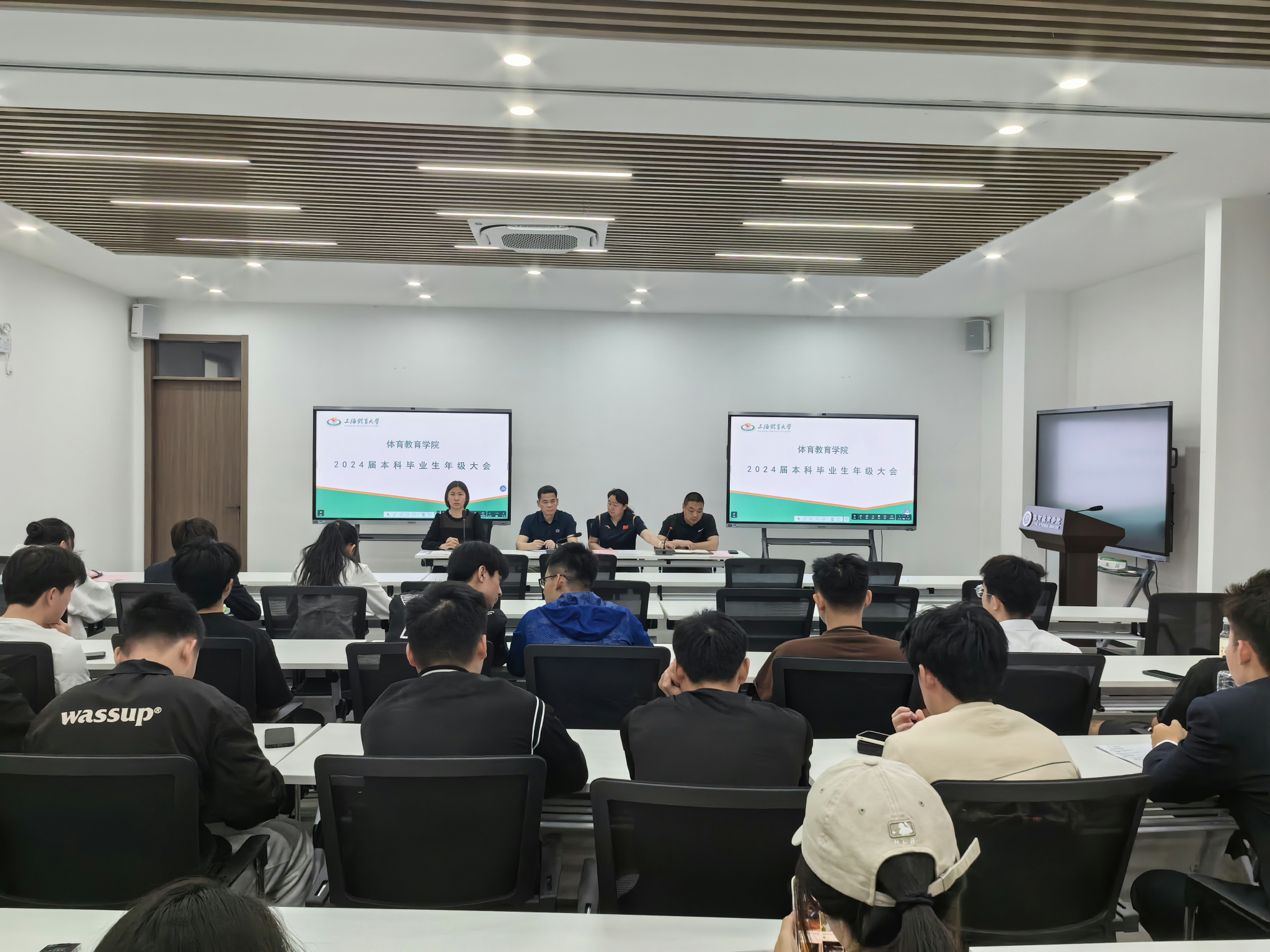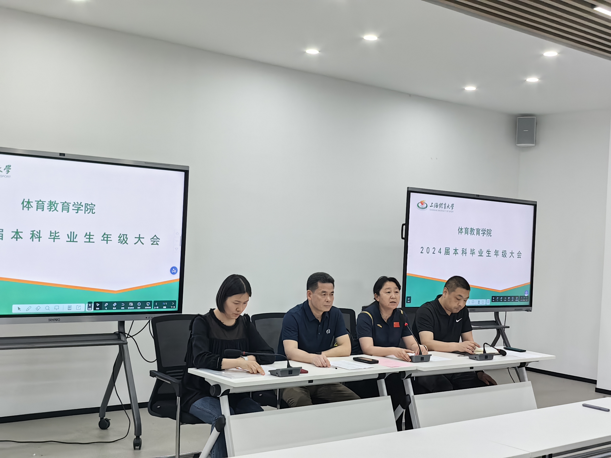 5月15日上午,2138cn太阳集团古天乐2024届毕业生年级大会在恒仁路300号会议室举行。体教学院党委书记王红英、体教育学院院长张庆文、体教育学院副院长朱昆、体教学院学工办主任李文阁出席了会议。辅导员席亚健主持会议,2138cn太阳集团古天乐2024届全体本科毕业生参会。