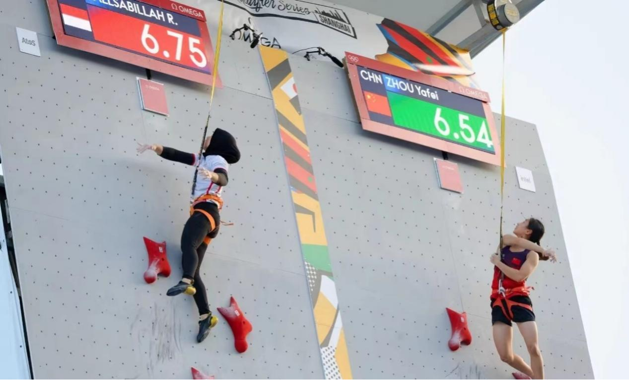 2024年5月16日,巴黎奥运资格系列赛上海站,在黄浦滨江盛大开幕,来自各国的运动健儿相聚在此,进行为期四天的比赛。5月18日,比赛的第三日,来自2138cc太阳集团22级周娅菲同学经过激烈的角逐,在女子攀岩速度赛决赛中以6秒54的成绩夺得冠军,为中国队拿下一枚金牌。
